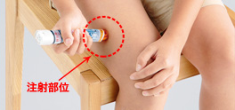エピペン®を座位で注射する場合の画像を加工して掲載(2024/11/30 参照)