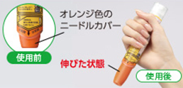 注射後、オレンジ色のニードル(針)カバーが伸びているかどうかを確認します。