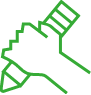 エピペン®を太ももの前外側に垂直になるようにし、オレンジ色のニードル(針)カバーの先端を「カチッ」と音がするまで強く押し続けます。太ももに押し付けたまま数秒間待ちます。エピペン®を太ももから抜き取ります。