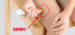 アナフィラキシーの徴候や症状を感じたときに、太ももの前外側に速やかに注射してください。