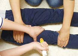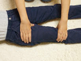 太もものつけ根と膝をしっかり押さえ、動かないように固定してください。