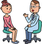 医師に太ももの注射部位を示し、エピペン®使用前の症状および使用後の経過を説明してください。